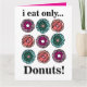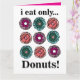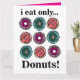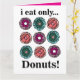 Donuts Ich esse nur Donuts Card Original-Design von Nisha Prabhu. Genießen Sie Ihren süßen Zahn mit unserer "Donuts I Eat Only Donuts"-Karte! Dieses spielerische und lebendige Design ist perfekt für den Donut-Liebhaber in Ihrem Leben und ist eine köstliche Art, Geburtstage, besondere Anlässe oder einfach nur aus dem Grund zu feiern. Mit farbenfrohen Illustrationen zu den Lieblingsgebäck aller wird diese Karte jedem, der sie erhält, ein Lächeln bringen. Ob Sie es an einen Freund, Familienmitglied oder sich selbst weiterschicken, diese Karte ist eine wunderbare Erinnerung, dass das Leben mit Donuts besser ist! Nimm heute deine und verbreite die Freude an deiner Lieblings-Leckerei!