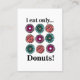 Donuts Ich esse nur Donuts Business Card Original Design von Nisha Prabhu. Vollständig anpassbar. Personalisieren Sie Ihre Daten. Fügen Sie Ihrem beruflichen Leben einen Sprinkle der Persönlichkeit hinzu mit unserer aufschlussreichen Visitenkarte, die Ihre Leidenschaft für die beliebte Leckerei aller perfekt einfängt - Donuts! Diese Karte wurde für den Donut-Liebhaber konzipiert, der seriöses Business bedeutet. Sie zeichnet sich durch ein skurriles und unterhaltsames Design aus, das Ihre Liebe für diese köstlichen Köstlichkeiten präsentiert. Eine spielerische Illustration, die mit anderen Donut-Enthusiasten auftaucht. Egal, ob Sie ein Food Blogger, ein Bäcker oder einfach nur ein Donut-Liebhaber sind, diese Visitenkarte ist die perfekte Art, süße Verbindungen herzustellen. Lass allen, dass du nicht nur im Geschäft mit Donuts bist - du lebst für sie!