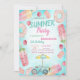 Diese Einladungen beinhalten Donuts, Makronen, Kirschen und ein Eisrad auf blauem Hintergrund. Diese Einladung ist einfach an Ihre Veranstaltung angepasst, indem Sie einfach Ihre Details hinzufügen.