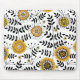 Doodle-Blume und -Blätter in Gelb und Schwarz Mousepad