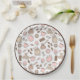 Diese Papiertafel ist in Pastellbraun, Beige, Rosa und Weiß gehalten. Der Teller ist mit Kaffeebohnen, Kaffeekanne, süß, Kuchen, Tasse und Untertasse, Kuchen und Kaffeemaschine im Doddle-Stil entworfen.