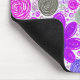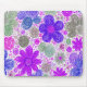 Lebhafte Blume in lila, rosa, blauen und grünen Farbtönen sind in einem skurrilen, wirbelnden Muster angeordnet
