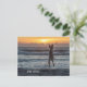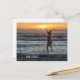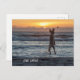 Eine ermutigende Postkarte mit einem goldenen Dodle, der aufspringt, um einen Ball vor einem Sonnenuntergang am Strand zu fangen. Der Text sagt Live Large und kann geändert werden.