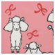 Ein lustiger Stoff für Hundefreunde mit weißen Poodles mit Bögen an ihren Ohren und schwebenden roten Herzen auf einem warmen rosa Hintergrund. Sie können die Hintergrundfarbe an Ihre Bedürfnisse anpassen.