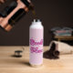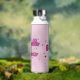 Bleiben Sie auf Ihrem nächsten Abenteuer hydriert mit dieser lebendigen "Doodle Mom"-Wasserflasche mit einem spielerischen pastellrosa Hintergrund.
