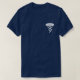 Dieses Shirt hat den PostgreSQL 9 Entwurf auf Tasche und Rückseite des Shirts, im Weiß auf einem Marineblau-Shirt.