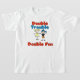 Strichmännchenjunge und -mädchen mit Text, der "doppelten Problem-Doppelt-Spaß" auf Front liest, "er tat sie! Sie tat sie!" auf Rückseite.