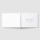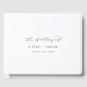 Cet élégant livre d'hôtes de mariage de script est parfait pour un mariage simple. Le design minimaliste noir et blanc présente une typographie romantique avec style glamour moderne. Personnalisable dans n'importe quelle couleur. Gardez le design minimal et élégant, tel quel, ou personnalisez-le en ajoutant vos propres graphiques et artwork. Personnalisez la couverture avec les noms de la mariée et du marié et la date du mariage.