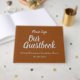 Ce livre d'or minimaliste présente les messages "Notre livre d'or" et "S'il vous plaît signer", ainsi qu'une date et une description personnalisées de l'événement/de l'occasion. Le texte est gris coloré et l'arrière - plan est marron. Un livre d'invité générique et personnalisable comme celui-ci peut être utilisé lors d'un événement tel qu'une réunion de famille, une fête de retraite, un baby shower, une célébration d'anniversaire de mariage, une fête d'anniversaire ou tout autre événement.