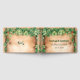 Ce livre d'hôtes de la St. Patrick's Day Irish rustique mariage est décoré dans un style charmant en bois et en vigne, créant une élégante esthétique vintage. Il présente une vigne verte enroulée autour de pôles en bois, avec les noms du couple sur une police celtique. Ce design unique et sophistiqué capte l'essence de la Saint Patrick d'une manière subtile et raffinée. La combinaison d'éléments crée un look visuellement attrayant et cohésif qui impressionne les invités et sert de gardien chéri. Dans l'ensemble, ce livre d'hôtes de style vintage allie éléments rustiques et charme irlandais, ajoutant une touche de sophistication à toute célébration mariage sur le thème irlandais.