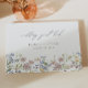 Un livre d'hôtes mariage fleur sauvage avec de jolis graphiques aquarelle fleuris dans les tons rose, bleu, jaune, lilas et vert doux et une police moderne. Parfait pour un mariage de printemps, d'été ou de thème fleur sauvage et vous pouvez l'associer avec n'importe quoi dans la collection ELODIE pour un look cohésif.