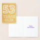 La face avant de cette conception de carte de vœux dorée à motif anniversaire accrocheuse, audacieuse et emphatique comporte le message « 53 ANS ! ». L'intérieur comporte un message de vœux d'anniversaire qui peut être modifié. Une carte d'anniversaire comme celle-ci pourrait être utilisée pour envoyer un message de vœux d'anniversaire à quelqu'un qui célèbre son 53e anniversaire.