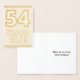 L'avant de ce modèle de carte de vœux en feuille d'or à l'occasion d'un anniversaire, accrocheur, emphatique et audacieux, comporte le message "54 ANS !". L'intérieur comprend un message d'anniversaire personnalisable. Une carte d'anniversaire comme celle-ci pourrait être un moyen spécial d'envoyer des vœux d'anniversaire à quelqu'un qui célèbre son cinquante-quatrième anniversaire.