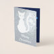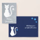 Caricature en silhouette d'un chat. L'avant a le chat en feuille. L'intérieur a un chat blanc aux yeux bleus. Une étoile glacée est suspendue à la queue du chat. Sur le devant de la carte on peut lire "Joyeux Noël" et à l'intérieur on peut lire "Je vous souhaite un Noël parfait"