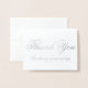 La carte de remerciement dans la petite taille de 4 pouces est affichée en blanc avec une impression en papier argenté. Ajoutez votre texte à l'intérieur si vous le souhaitez. Customisez cette carte et modifiez le texte ou achetez tel quel.