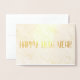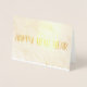 Carte de vœux de Nouvel An avec message à l'intérieur en texte doré. Les images sont en véritable feuille d'or et vous pouvez les personnaliser ainsi que le texte doré.