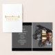 Améliorez vos annonces de remise de diplômes grâce à des fiches d'invitation uniques. L'avant affiche le nom et l'année de classe du diplômé en papier or. Les détails de l'obtention du diplôme, y compris les informations pour la fête, sont à l'intérieur de la carte. Ajoutez la photo de votre diplômé à l'intérieur. Le verso de la carte porte le nom de l'année du diplôme et de la classe. Facile à utiliser modèle. Grad tigre personnalisé. Couleurs noir et blanc. Véritable feuille or. Utilisez le modèle pour personnaliser.