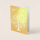 Carte Fleurs d'Arbre Whimsical Joyeux Anniversaire. Arrière - plan de feuille d'or, arbre lunaire en fleurs, et Joyeux anniversaire sur le côté avant. Un souhait personnalisable, votre nom, des fleurs à l'intérieur. Joli, moderne et simple.