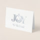 Véritable huile d'argent Cette note nard est présentée en blanc avec un imprimé festif de Noël Joie au monde. Customisez cette carte ou achetez comme indiqué. Impression sous licence