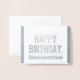 Cette carte de voeux d'anniversaire gritty en feuille d'argent comporte le message "HAPPY BANTHDAY" sur le devant, où le nom peut être personnalisé. Il y a un message customisé à l'intérieur. On pourrait l'utiliser pour souhaiter un joyeux anniversaire à quelqu'un.