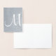 Carte pliée Monogrammed argent sur mesure, vide à l'intérieur. Une police de caractères stylish, Script décore cette carte de note Monogrammée. L'Initial peut être modifié dans une autre lettre avec le modèle pour personnaliser sur la page du produit. La typographie montre le type de papier, semblable à un aspect découpé de la feuille. La carte est principalement la mise en page de papier avec la lettre montrant le papier. L'intérieur est vide pour votre message. Le dos est principalement l'impression de papier avec l'attribution imprimée. La carte est paramétrée en Argent Foil sur papier Kraft, mais Gold peut être choisi pour le papier et le papier peut être changé en un autre type. Différents types de papier Cartes et Enveloppe sont disponibles.