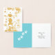 Illustration décorative de chat en véritable feuille d'or, bleu à l'intérieur accentué par des Empreintes de pattes d'un côté et un salut de l'autre.