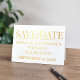 En or ou en argent, ce moderne enregistrer la date pliée feuille carte est la date de sauvegarde que vous avez cherché. Ajoutez vos futurs détails de mariage !