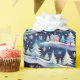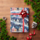Ein sanfter und farbenfroher Druck, um die Kinder zu verzaubern - ein pastellfarbenes malerisches Dorf in einem Mitternachtsblauen Schneesturm. Nahtloses Bild.