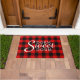 Einzigartige, elegante und dekorative, moderne Bauernstube mit niedlichem Dorm Sweet Dorm Zitat, auf einem klassischen rot-schwarz gefärbten Buffalo Lumberjack Karo Muster Design.