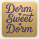 Das ist ein Dorm Sweet Dorm Untersetzer Set. Die Untersetzer zeigen Dorm Sweet Dorm in lila Schrift auf metallischem goldenen Hintergrund. Es gibt zwei niedliche lila Herzen zwischen den Worten. Die Kunst ist ein niedliches Comic Vektorkunst Stil. Die Untersetzer sind Untersetzer aus Papierhalbstoff in einem Set von sechs Untersetzer. Die Untersetzer sind zäh, haltbar, absorbierend und ideal für Party, Studentenwohnheime oder Zuhause. Die Abmessungen sind 4" x 4".