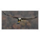 Ein prächtiger Glatzenadler, fotografiert mit seinen Flügeln, die sich durch den Fisch in Richtung Bäume hinter dem Fotografen verbreiten.