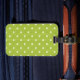 Fügen Sie Ihrem Gepäck mit unserem Dotty Delight Green Gepäcktag eine Touch Peitsche hinzu! Dieses stilvolle Gepäckanhänger zeichnet sich durch ein hübsches, weißes Polka Dot-Design auf einem hellgrünen Hintergrund aus und sorgt für ein gemütliches Imitat-Strick-Ambiente.