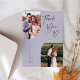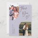 Elegante und rustikale Hochzeit Dankeschön-Karte mit einem doppelten Bogen lila Rahmen mit Text, der "danke" mit einem Herz sagt. Sie können 2 Fotos auf der Vorderseite und 1 auf der Rückseite.