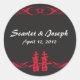 Avoir un mariage à thème asiatique ? Ce design est parfait pour vous. Avec le mot chinois "double bonheur" dessus. Ces autocollants sur mesure paraîtront superbes sur vos ballotins et vos sacs.