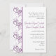 L'élégante invitation au mariage a une bordure de vigne violette à fleurs tourbillonnantes aux coeurs doubles entrelacés le long de la gauche de l'invitation. La police des noms de la mariée et du marié est de la même couleur que les coeurs et les vignes.Ajoutez vos propres détails mariages au invitation. Si vous devez modifier la taille ou la police du texte, vous pouvez utiliser le bouton "Customiser" pour déplacer les choses, redimensionner le texte et le customiser complètement. Sinon, si vous aimez la mise en page et la police comme elle est, il vous suffit d'entrer vos détails mariages dans les zones modèles. Cartes RSVP de mariage correspondantes disponibles séparément.Éléments correspondants: