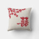 Ce "double coussin de fleurs de cerisier de bonheur" comporte une branche de fleurs de cerisier et le caractère chinois qui représente le "double bonheur".