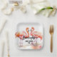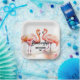 Organisieren Sie Ihre Wiedersehen mit einem anpassbaren Party-Essentials, wie diesen Tellern aus Papier mit Flamingos und schwarzem Text auf weißem Hintergrund. Personalisieren oder entfernen Sie eines der Textelemente der Vorlage.