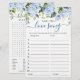 DOUBLE SIDED Blue Hydrangea Bridal Shower Game