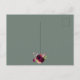 Sur le devant : Un élégant arrière - plan blanc avec un cadre géométrique en faux or. Décorée de fleurs bordeaux foncé et roses, de plumes roses et boho. Modèles pour le nom de la mariée et les détails du parti. Le nom est écrit avec un script de style écrit à la main, des lettres de couleur noire. Retour : un arrière - plan vert sage et tendance. Conseil : Si vous ne voulez pas qu'il ressemble à une carte postale, cliquez sur customiser, allez à l'arrière et retirez le séparateur et le timbre postal.