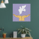 Freisetzung eines Taubenvogels aus den Händen. Dieses Design sieht wirklich effektiv aus auf diesem Poster