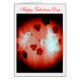 Carte de Saint Valentin aux oiseaux de la colombe entourée de coeurs et de fleurs dans une lueur rouge. De ma peinture en verre originale avec un effet numérique et facilement personnalisable avec votre propre texte. ©Annabel Potter