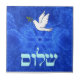 Das "Shalom" (hebräisch "Peace") und eine Taube mit einem Olivenzweig in ihrem Schnabel auf einem schönen, blauen und weißen Fraktal-Hintergrund mit einem Stern von David und der Anregung von Vogelflügeln.