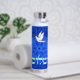 Die "shalom" (hebräisch "peace") und eine Taube mit einem Olivenzweig in ihrem Schnabel auf einem schönen, blauen und weißen Fraktal-Hintergrund mit einem Stern von David und der Anregung von Vogelflügeln oder Wolken. Passen Sie Ihren eigenen Text auf der Rückseite an.