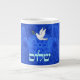 Die "Shalom" (hebräisch "Peace") und eine Taube, die ein wenig Olivenzweig in ihrem Schnabel trägt, auf einem schönen, an Vogelflügel erinnernden, blauen und weißen Fraktal.