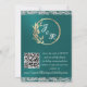 This romantic design features an elegant teal background with glitter borders, a delicate silver heart & doves with details for the event in elegant script on the front and a QR code, a monogram placeholder and place for your website on the back. Also available with different colored backgrounds for your wedding theme colors. (Glitter is simulated in the artwork). Designed to coordinate with the "Two Shall Become One - Hearts, Doves & Glitter" Wedding Collection. To change details, click «Personalize». To move the text or change the text size, font, or color click «Click to customize further»