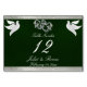 Ce design romantique présente un élégant arrière - plan vert émeraude avec des bordures de ruban, des coeurs et des colombes reliés avec un lieu pour le numéro de table, les noms du couple et la date de l'événement. Disponible en plusieurs couleurs pour votre thème mariage. (Le ruban est simulé dans l'illustration). Conçu pour coordonner avec la collection Mariage "Two Shall Become One - Silver & Gold". Pour modifier les détails, cliquez sur "Personnaliser". Pour déplacer le texte ou modifier la taille, la police ou la couleur du texte, cliquez sur "Cliquez pour customiser plus loin".
