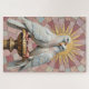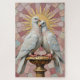 This smooth, classical fresco painting captures two pure white Doves perched on a gilded pedestal, engaged in gentle preening, surrounded by a halo of delicate pink Roman mosaic tiles in a sunburst pattern. A timeless and intimate Valentine's Day design.