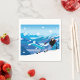 Dieses Design ist ein Abfahrtsläufer. Der Skifahrer rennt die schneebedeckten Pisten hinunter. Dieses abfahrende Skilangdesign sieht auf diesem Papier Napkins großartig aus