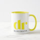 Mit dieser eleganten und modernen "dr"-Tasse mit feinem Typografie und einem individuellen Namen feiern Sie berufliche Errungenschaften im Stil. Das gelbe und weiße Design, mit einem kontrastierenden gelben Interieur und Griff, macht es zu einem perfekten Geschenk für Ärzte, Doktoranden oder jeden mit einem wohlverdienten Titel. Ob für einen Abschluss, eine Werbeaktion oder einfach nur als nachdenkliches Zeichen der Anerkennung, dieser personalisierte Schlamm ist eine schicke und sinnvolle Art, harte Arbeit und Erfolg zu ehren. 💡 Anpassen: - Klicken Sie auf "Diese Vorlage personalisieren", um den Namen hinzuzufügen. - Woll mehr Änderungen? Wählen Sie "Bearbeiten mit Entwurfswerkzeugen", um den Schriftart, die Farbe oder das Layout anzupassen.