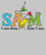 Ne le frappez pas avant de l'essayer, il se peut que vous l'aimiez ! GREEN EGGS AND HAM est une histoire classique du Dr Seuss où Sam-I-Am essaie d'amener son ami à essayer des oeufs verts et du jambon, et il finit par les aimer. Regardez Sam-I-Am tenant une pancarte avec son nom dessus.